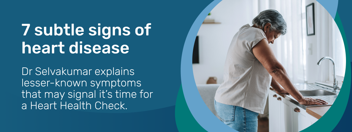 Even if you feel healthy overall, your heart may be trying to get your attention. Here are 7 lesser-known symptoms of heart disease that suggest you could benefit from a Heart Health Check. And remember, the earlier heart disease is recognised, the sooner you and your doctor can do something about it. This gives you the best chance of a good outcome.